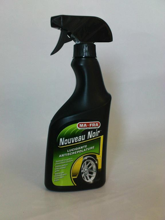 Chráni a oživuje originálny vzhľad pneumatíky. Ochraňuje proti popraskaniu, atmosferickým a chemisým vplyvom. Nouveau noir nešpiní, nelepí a možno ho použiť na všetky výrobky z gumy.